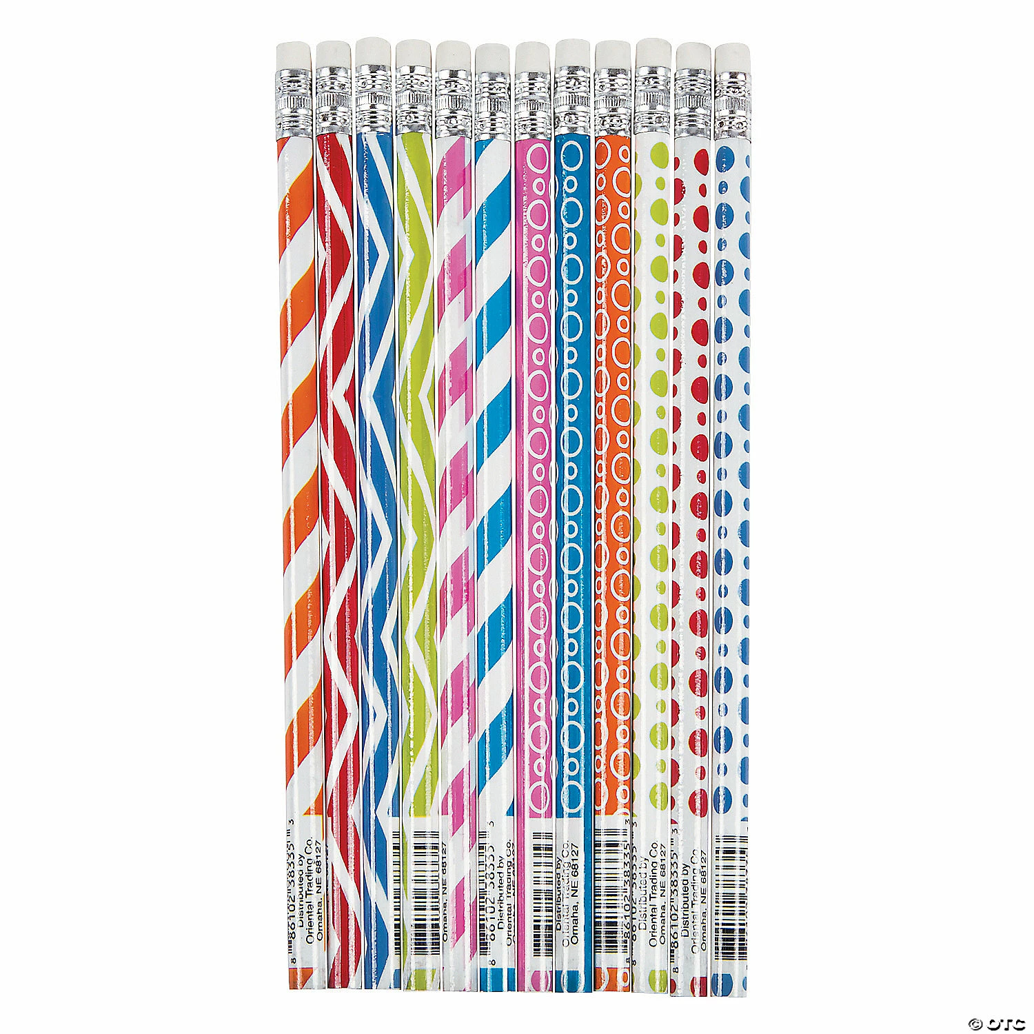 β’ Whatβs Included: Pencils are as useful as they are nostalgic, so pop these brightly patterned pencils in favor bags, holiday stockings or tie them to gifts for snazzy packaging. This set includes 144 pencils in assorted colors and patterns. β’ Perfect for Home and Classrooms: Include these colorful classroom supplies in your prize bin, hand out for good behavior or give to kids on Halloween instead of candy. β’ Why We Love It: Youβll never be at a loss for words with a bright and colorful pencil in your hand! β’ Great for Kids: These plastic-wrapped pencils are vibrant and easy to sharpen. Ideal for ages six and up. Product Description: Get analog and put some fun in their hands with these bulk fun print pencils! The set includes 144 unsharpened pencils in a variety of colors and patterns. Specs: Size: 7-1/2″Quantity: 144 piecesMaterial: WoodBrand: Β© OTC – Oriental Trading Company