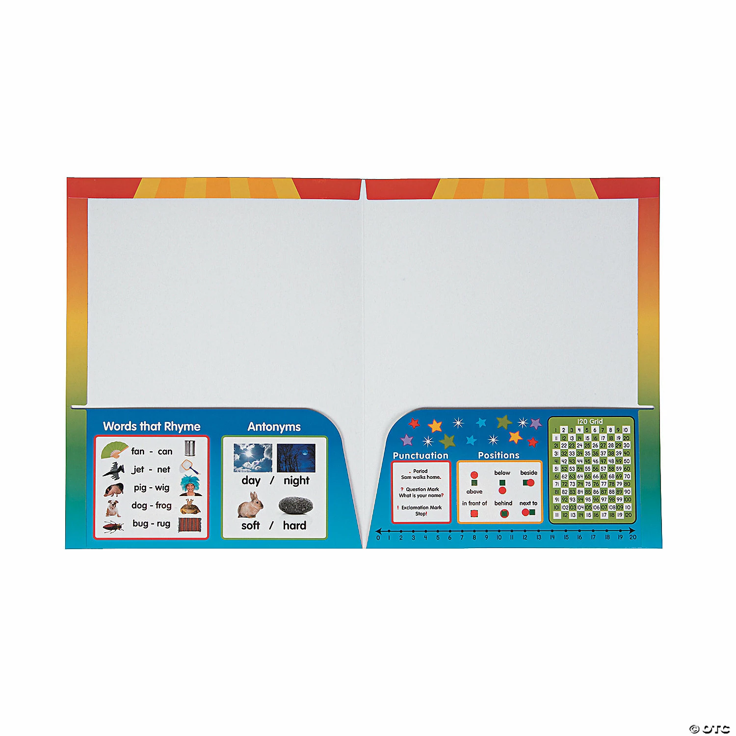 Get your Kindergarten students set up for success! These pocket folders are a great teaching aid for teachers and a great reference guide for students! Help visual learners see ways to look at math problems, shapes, words and phrases! Includes the alphabet, sight words, long and short vowels, ten frame math, shapes and more. Paper. 9 7/8″ x 12″ © OTC