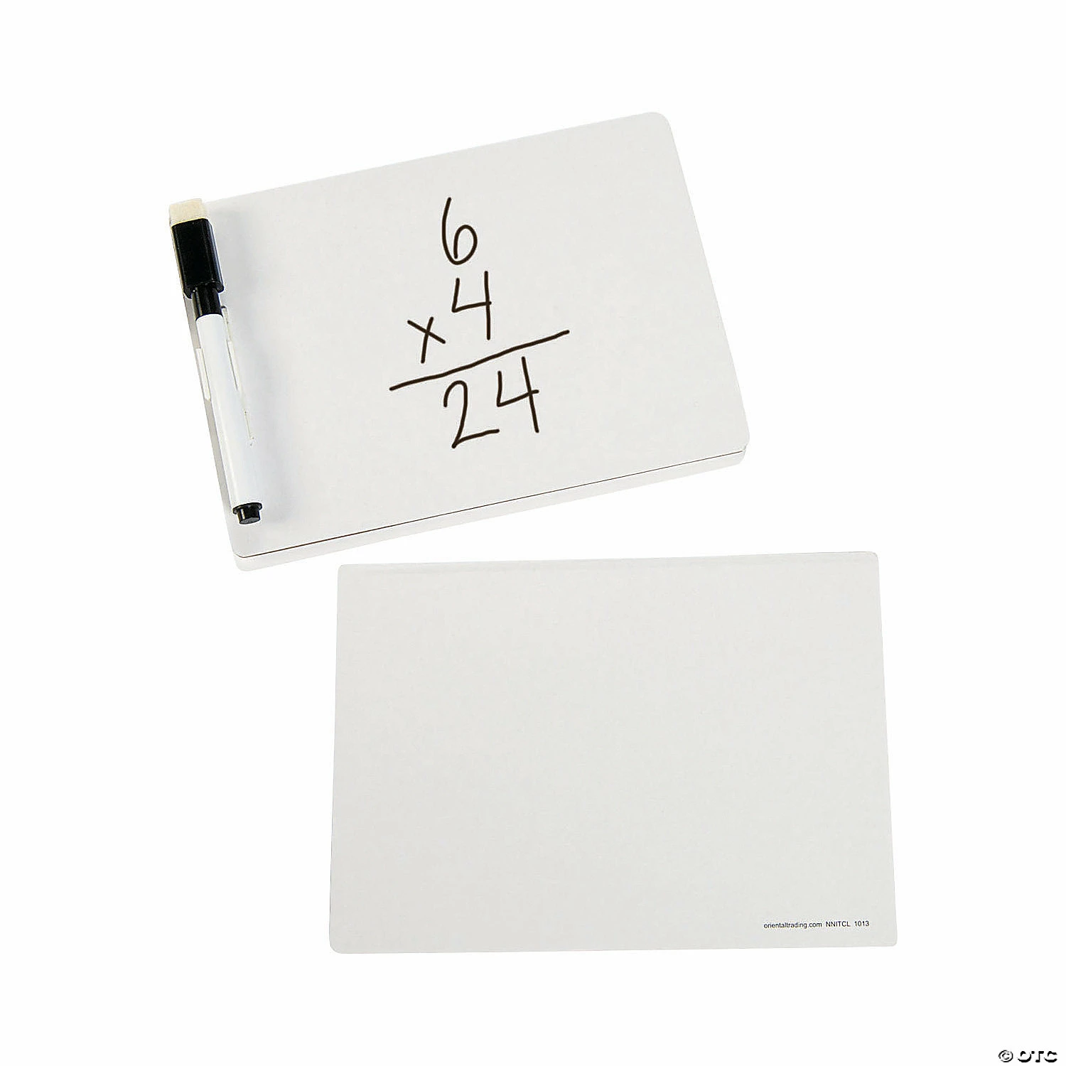 Each of these convenient Write-On Mini Dry Erase Boards includes a 4 1/2″ dry erase marker with built-in cap eraser. These personal dry erase boards for kids are the perfect size for backpacks and desks! Use them during individual study sessions, interactive learning and writing practice for the ultimate learning tool. Safe and non-toxic. Cardboard. 5″ x 7″ Conforms to ASTM D-4236.