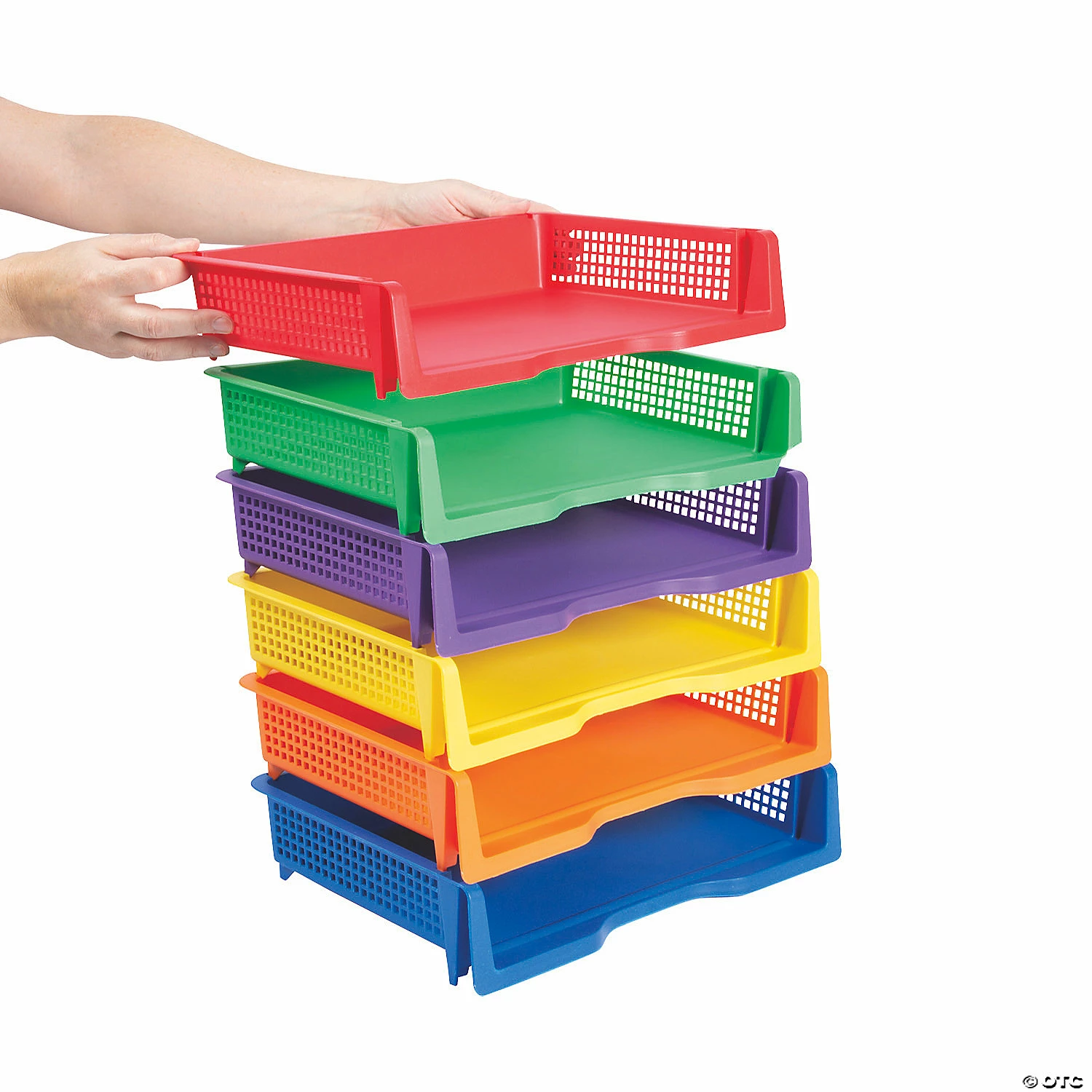 Are you working with limited space in your classroom or office? No problem! These stackable bins stack vertically for the perfect place to house papers, assigments, supplies and more while maximizing your space. A must have teacher resource or addition to your office supplies, these plastic bins come in red, green, yellow, purple, orange and blue. Add a pop of color to your space while staying efficiently organized! (6 pcs. per set) 13 1/4″ x 9 1/2″ x 2 3/4″
