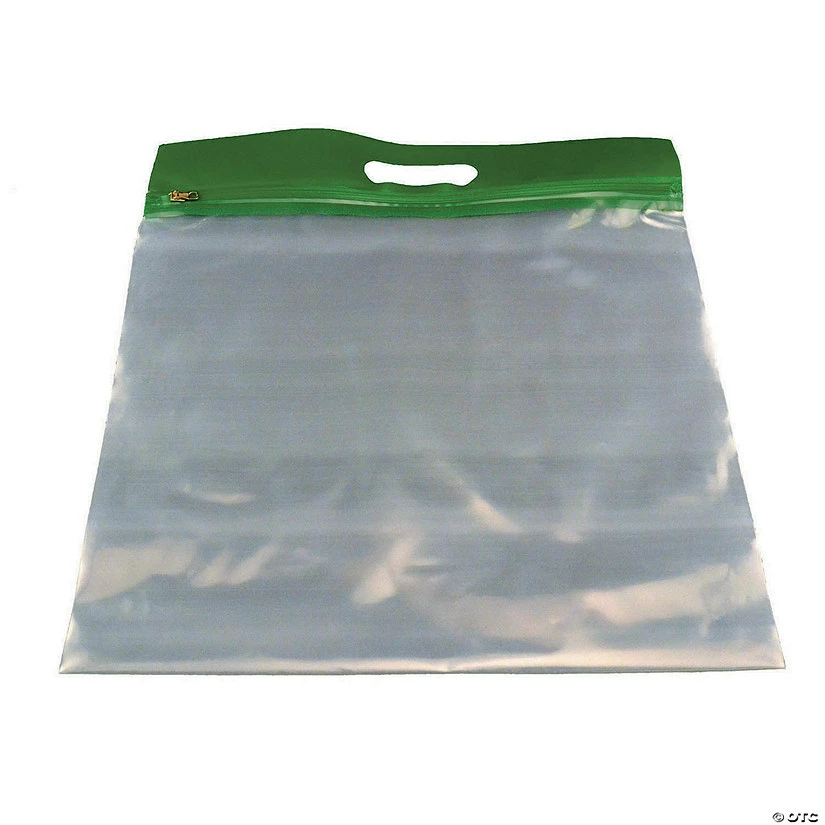 ZIPAFILE® is a heavy duty Storage Bag with a reclosable zip closure. ZIPAFILE® is a great solution for organization of learning center materials and ideal for transporting reading and homework assignments while protecting the supplies from wear and tear. ZIPAFILE® is made of clear low density polyethylene, that is acid free and CPSIA Compliant. The zip closure is Green. 5ml thick, and 13″W x 14″H.